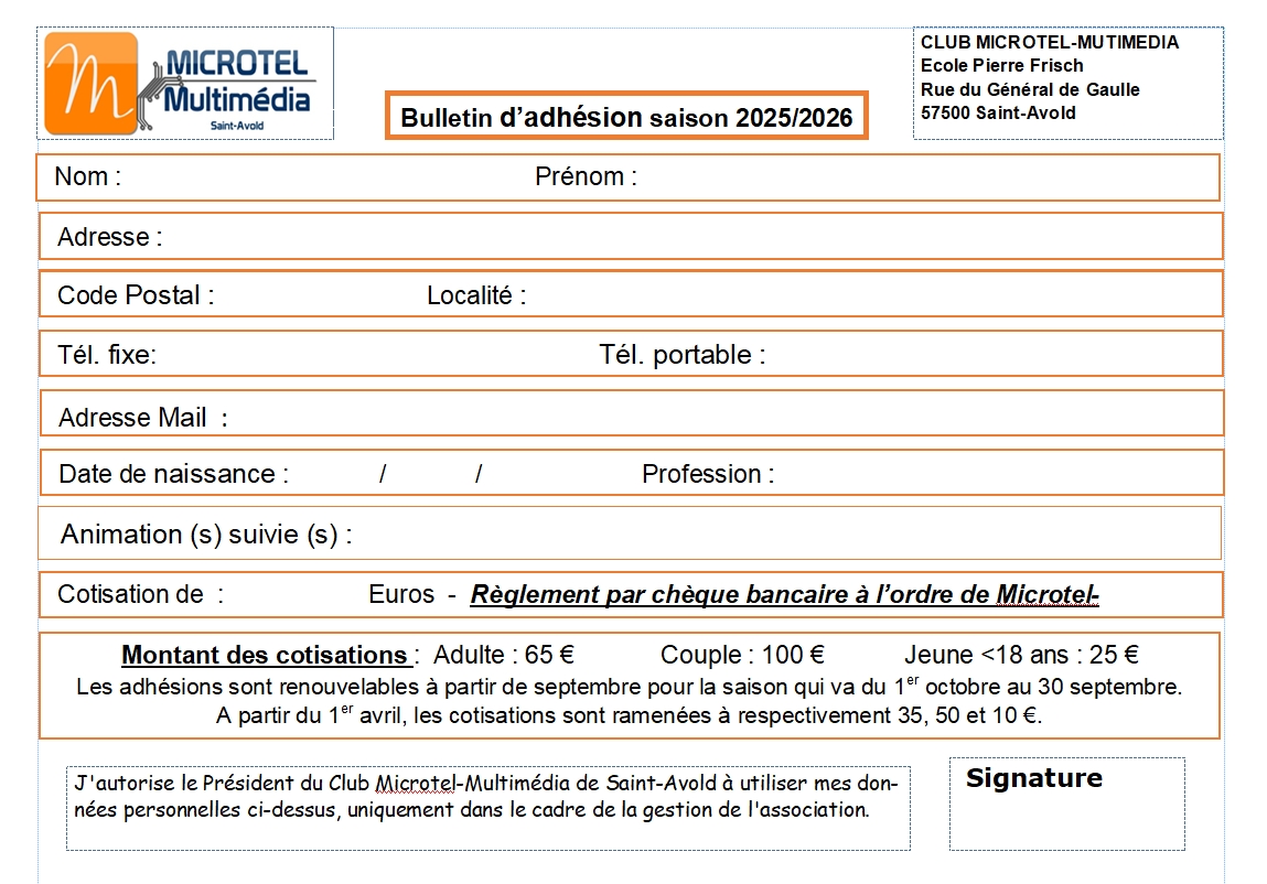 Bulletin d’adhésion 2025-2026 Il est possible de télécharger ce Bulletin d’adhésion pour l’imprimer et le compléter.